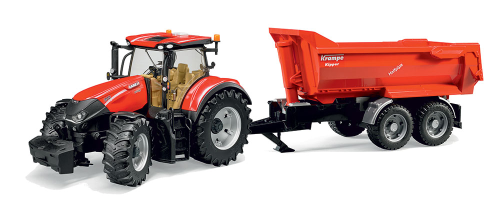 Když traktor, tak i s vozem! Novinka v podobě traktoru Case IH Optum 300. Kvalitní hračka vyrobena z odolného plastu, který hravě vydrží i při terénních podmínkách, bude skvělou odměnou za vysvědčení a snahu ve škole. U traktoru je možné otevírat dveře i kapotu, samozřejmostí jsou nerozbitná skla. Skrze střechu se snadno ovládá řízení traktoru a umožňuje opravdový požitek ze hry. Přední závaží je možné oddělit, oj zase díky výškově zdvihacímu mechanismu dostat do takové polohy, která bude ideální. U vozu je možné ovládat zadní stěnu a snadno tak vysypat převážený náklad.