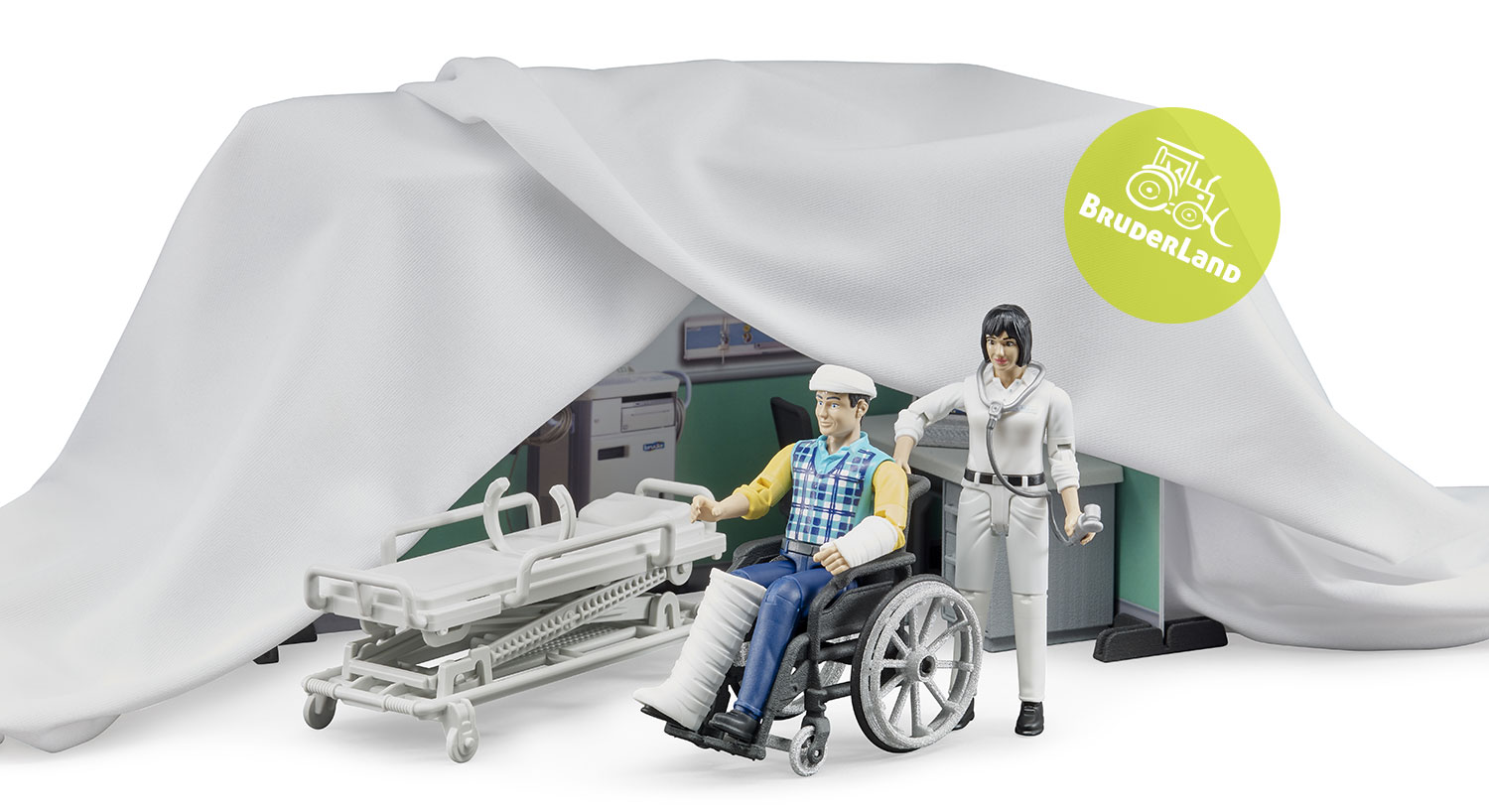 Naše nová nabídka upoutá jednak sběratele, a pak hlavně ty, kteří si rádi hrají na „doktory“. Ve stálé nabídce máme už delší dobu funkční sanitku s figurkou a nyní k ní přibude zařízená ordinace, s přepravním lehátkem pro nemocné (sklápěcí při naložení pacienta do sanitky, rozkládací při převozu pacienta na vyšetřovnu) a s vozíkem pro pacienty, kteří momentálně nemohou chodit. Ale to by vás samo o sobě příliš neuspokojilo. A tak nebude chybět ani lékařka s fonendoskopem na krku a pacient s rukou a nohou v sádře, který se může na „invalidní“ vozík posadit. Tohle všechno opět od zavedeného německého výrobce – jsou to věrné kopie reálných výrobků, funkční a ovladatelné, vysoce kvalitní a trvanlivé a hlavně bezpečné.