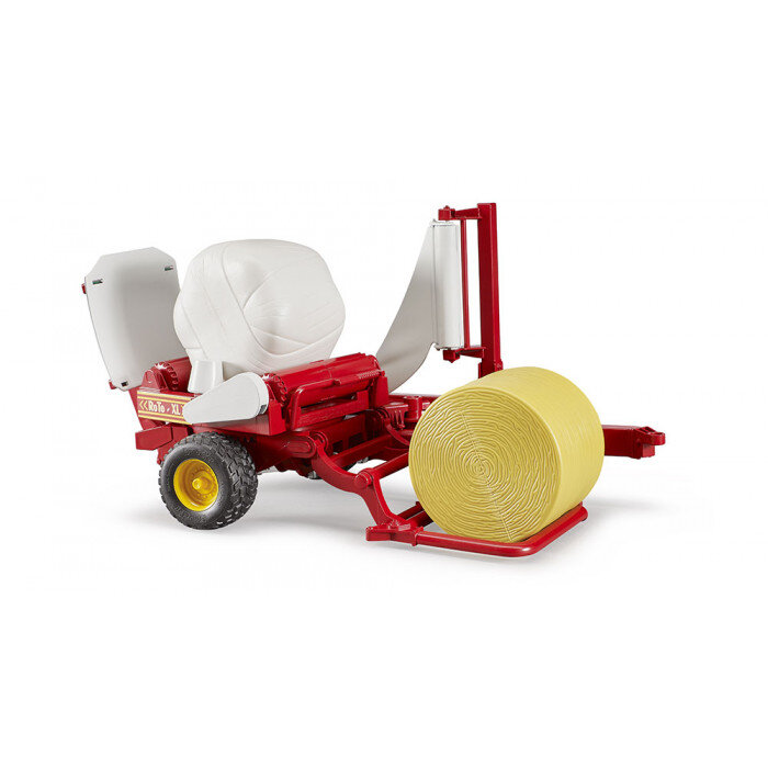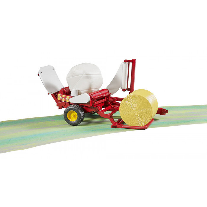 The bale wrapper will certainly be appreciated by every small farmer, for whom it will become a practical helper. This unique model can be attached to all Bruder Profi tractors . It has a loading arm that moves the bale to the revolving table, and then it is transported to the unloading part. If you connect the bale wrapper to the tractor, you can also use the adjustable drawbar.