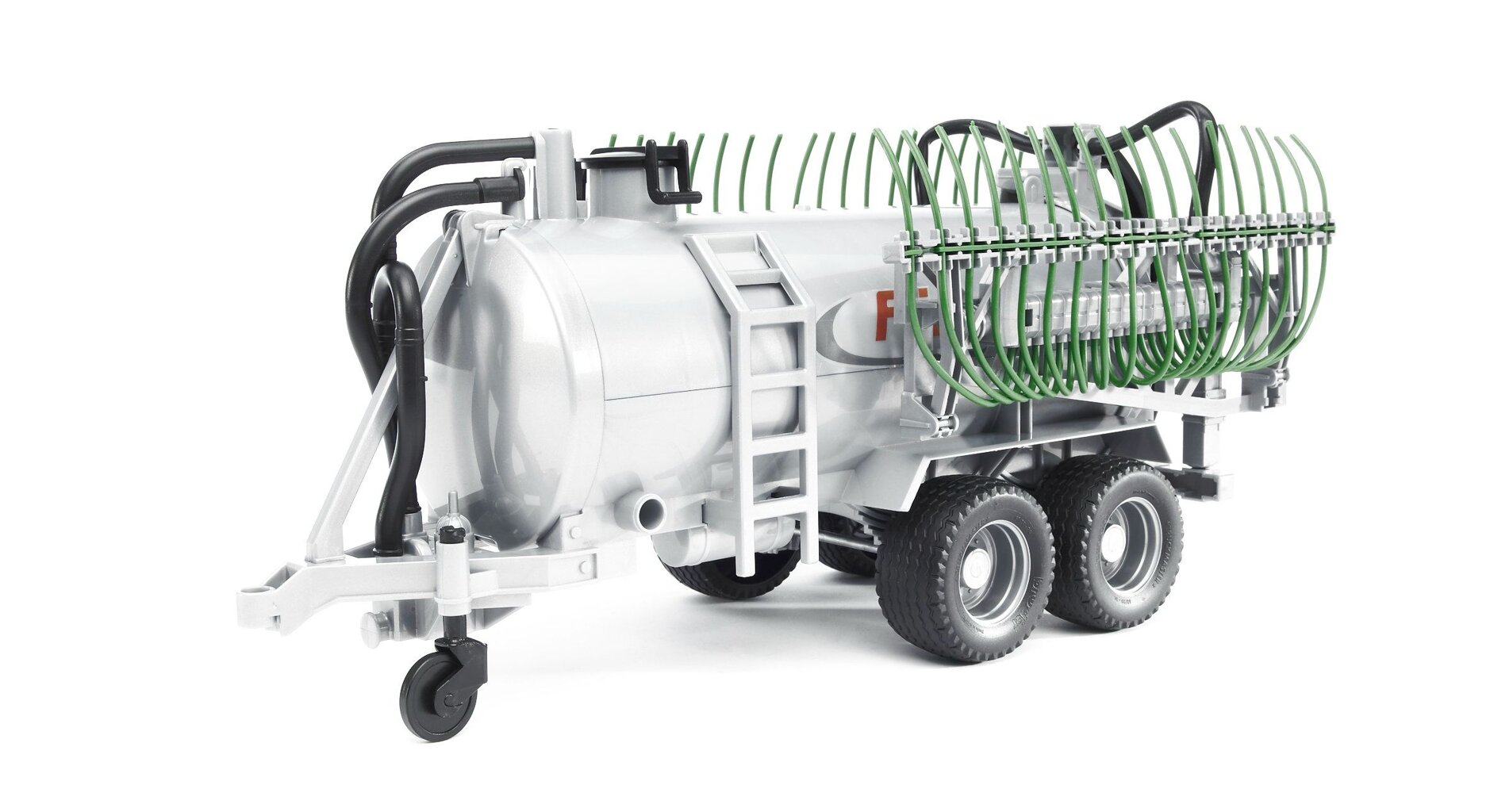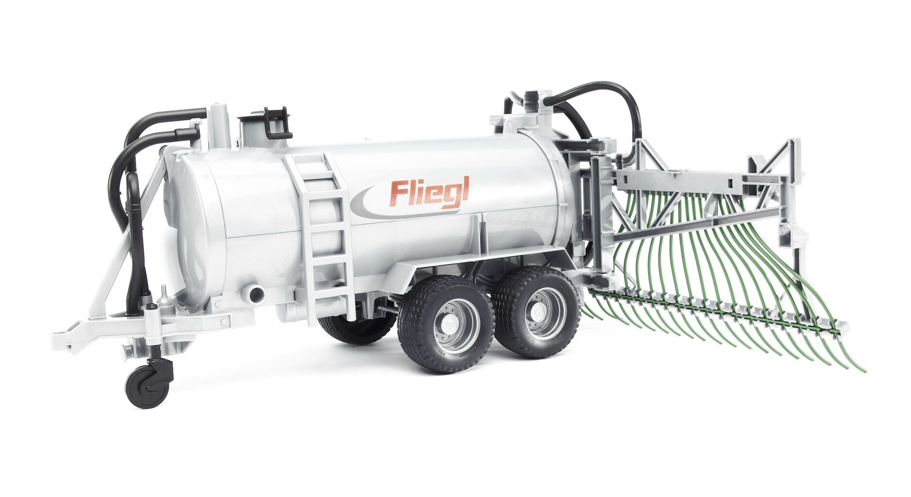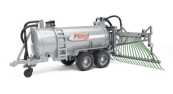 The detailed Fliegel barrel trailer with spread tubes is a new addition to Bruder tractors. The barrel trailer does not offer any functional elements, but pleases with its high-quality design, fold-out spread tubes or discharge valve.