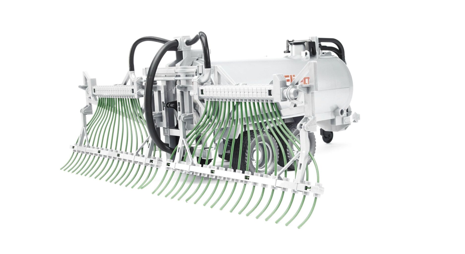 The detailed barrel trailer Fliegel with spread tubes is a new addition to Bruder tractors. The barrel trailer does not offer any functional elements, but pleases with its high-quality design, fold-out spread tubes or discharge valve.