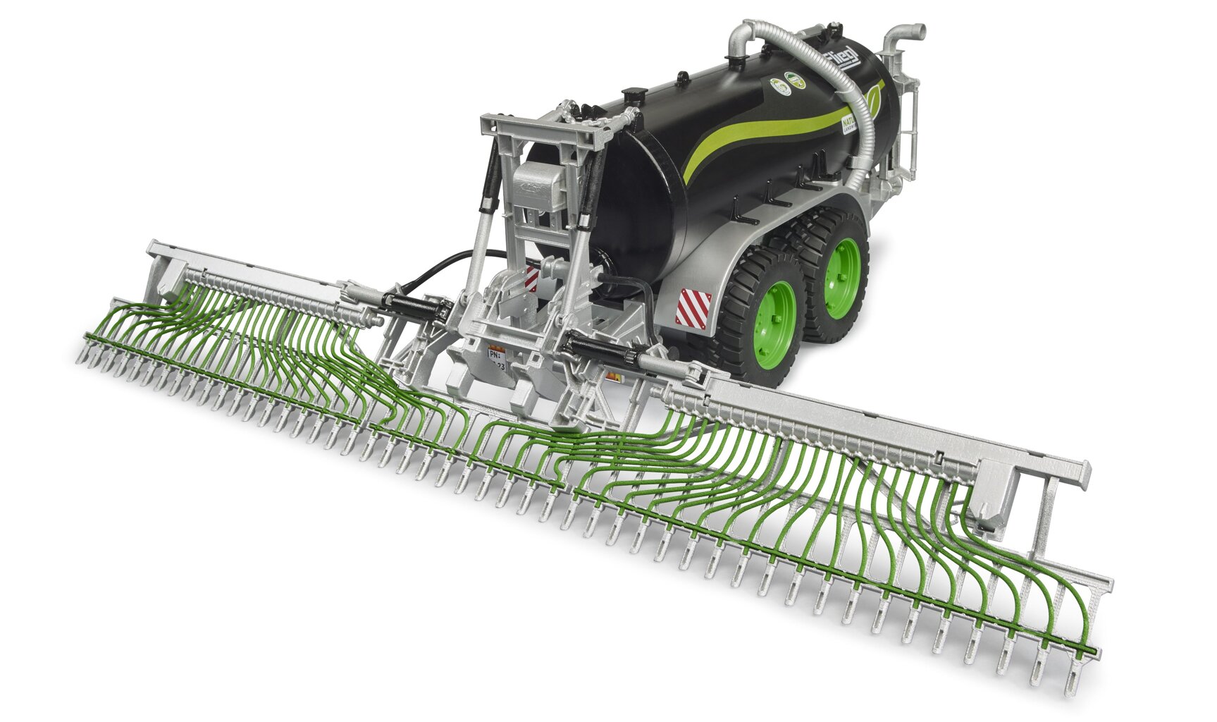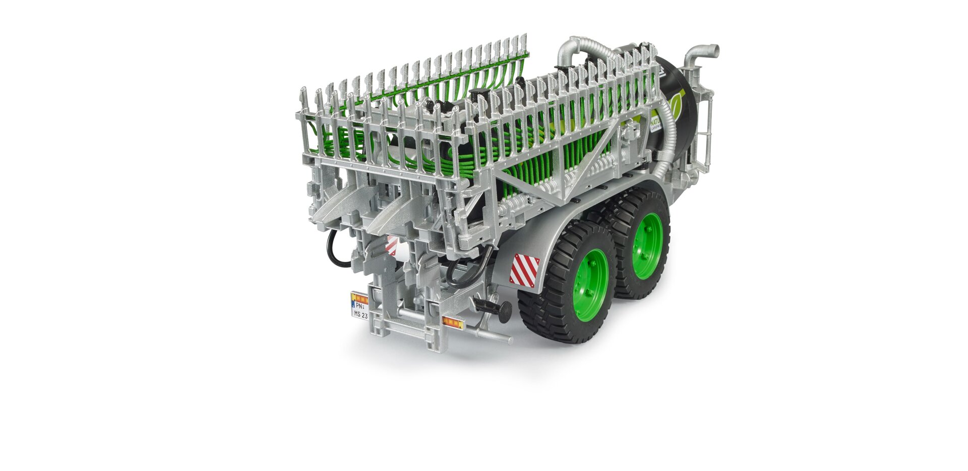 This detailed model from BRUDER is equipped with a hose distributor. The integrated tank can be filled with water and closed with a cap. The trailer is emptied through an outlet valve at the rear of the trailer. For road transport, the arms can be folded and unfolded again in the field. BRUDER 3000 and 4000 series tractors are ideal for this impressive trailer.