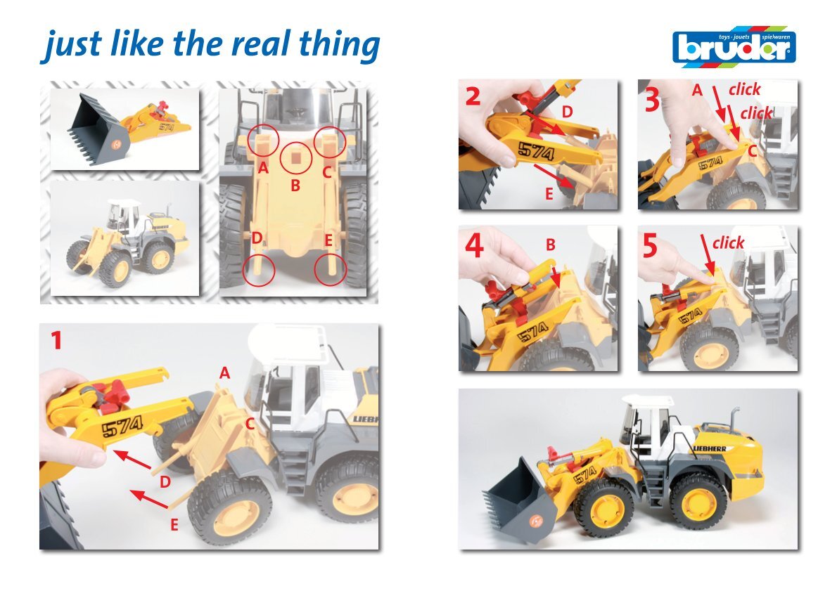 Easy assembly allows for quick replacement of a damaged or worn bucket, so your Bruder Liebherr loader will always be ready for the next job on site. The bucket is fully compatible with the Liebherr Bruder loader model, ensuring a correct fit and trouble-free functionality.