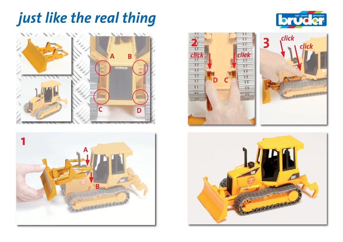 Easy assembly allows for quick replacement of a damaged or worn plough blade, so your Bruder bulldozer will always be ready for the next job on the job site. The ploughshare is fully compatible with selected Bruder dozer models, ensuring a correct fit and functionality.