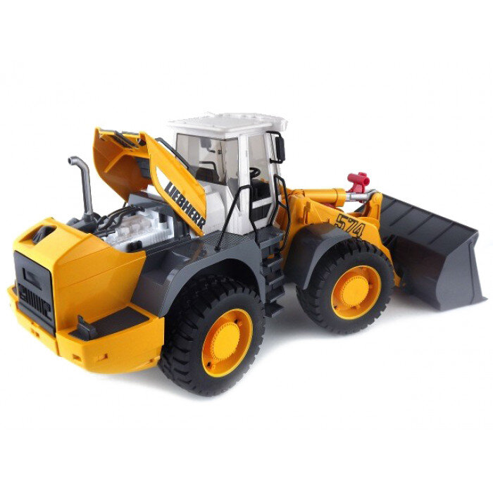 The Bruder Liebherr L 574 loader model in 1:16 scale will delight every boy. This sophisticated model has a large loading bucket that can be tilted as desired. The profiled tires together with the off-road axle enable comfortable driving both indoors and outdoors. After opening the hood, you can admire the detailed engine. The model is made of high-quality ABS plastic.