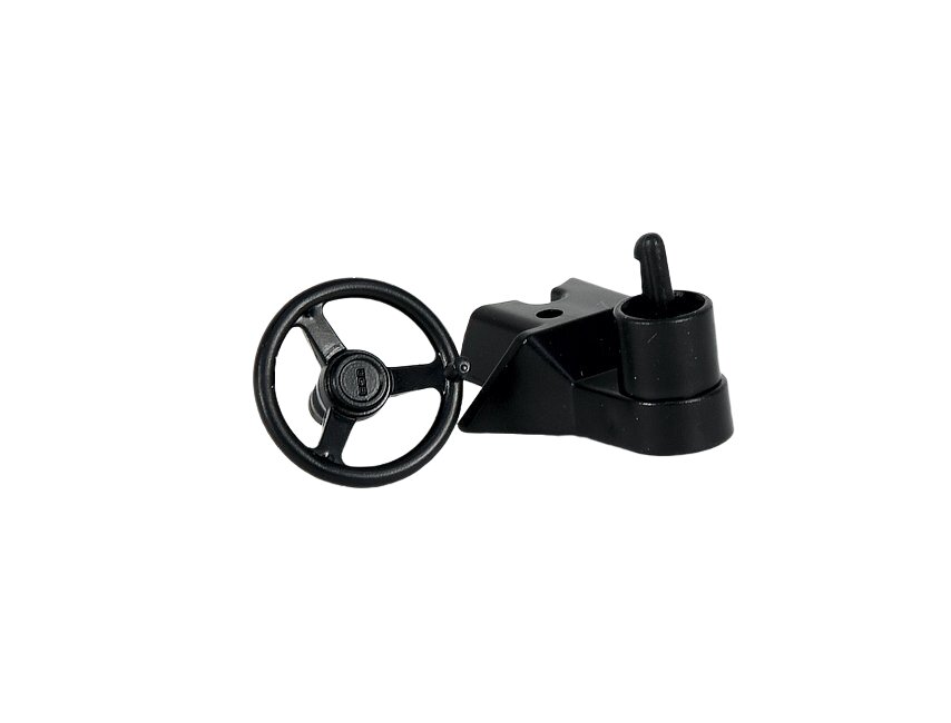 Original Bruder spare part 41515 is designed for Bruder forklift models. This set includes a steering wheel and hitch to ensure proper functionality and maneuverability of the truck when handling loads.
