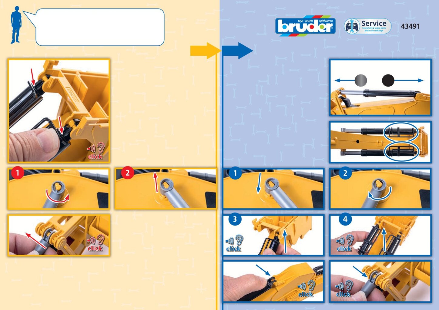 The original Bruder 43491 spare part is designed for the Bruder CAT crawler excavator model. This detailed part ensures smooth movement and realistic functionality of the excavator' s hydraulic system, contributing to an authentic gaming experience.