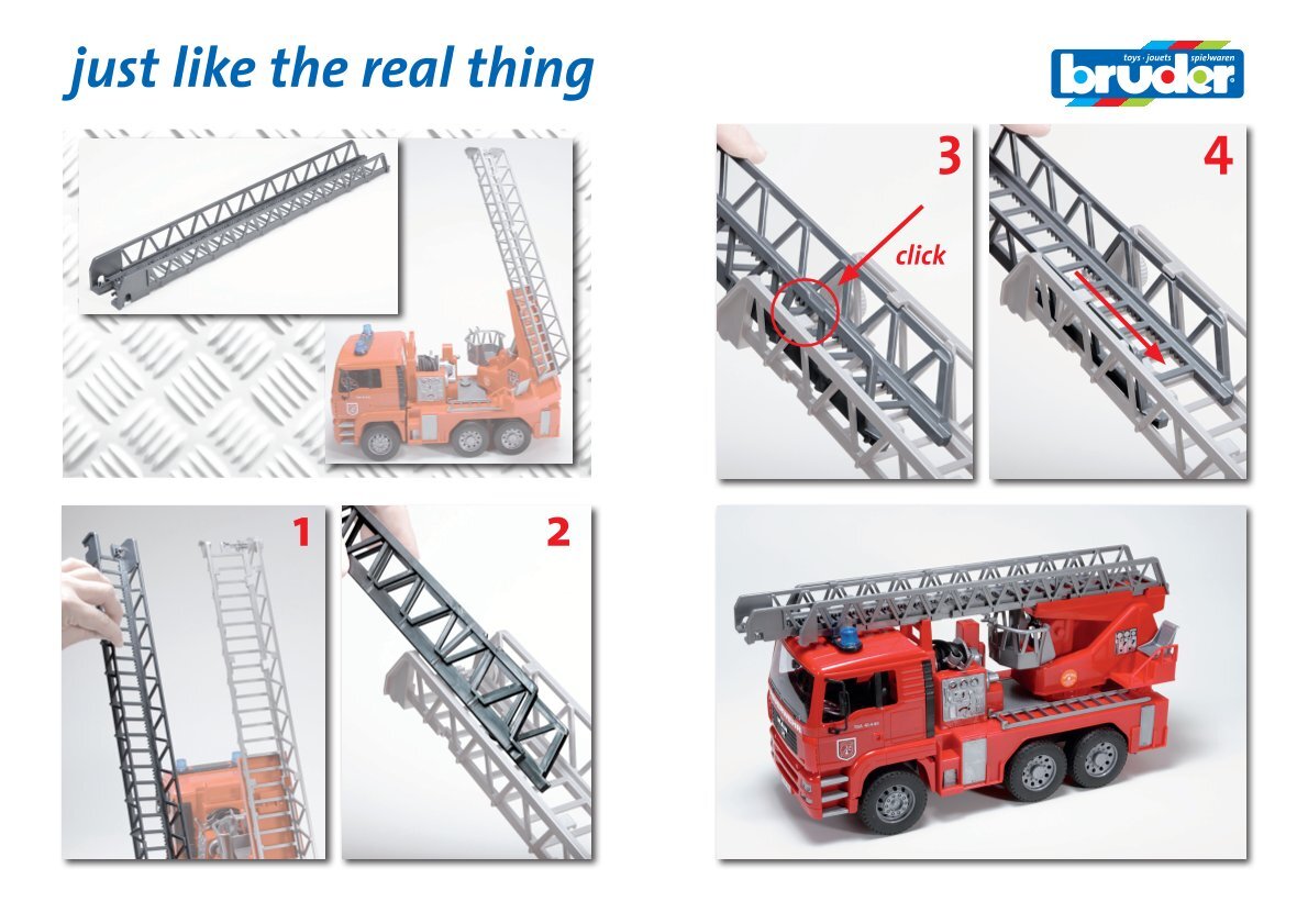 This original Bruder spare part is designed specifically for MAN fire truck models. The ladder is used to repair or complete your model, restoring its full functionality and giving it a realistic look.