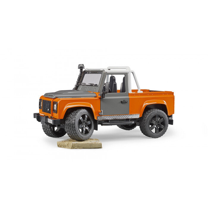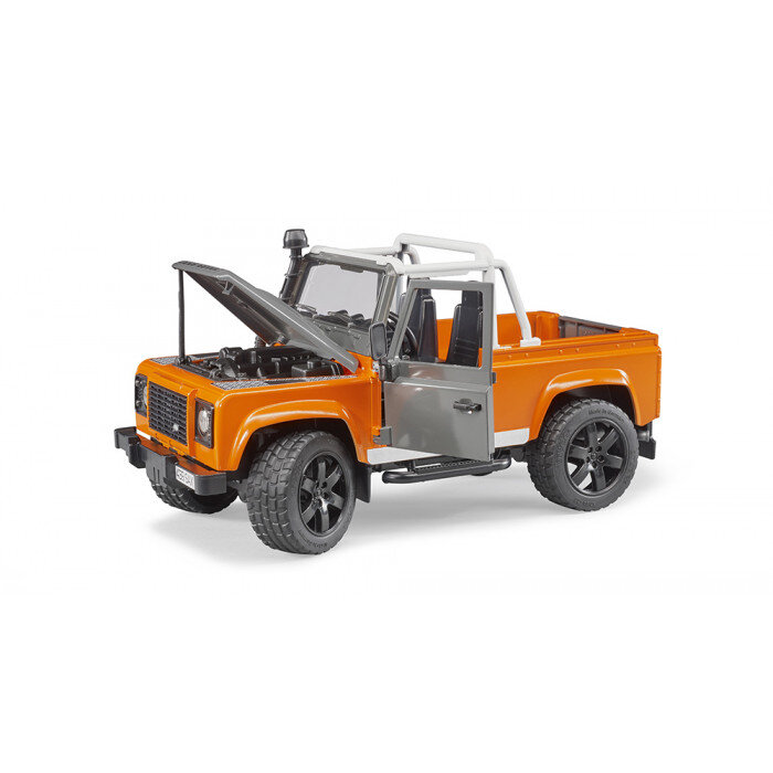 The detailed model of the Land Rover Defender Pick-Up will bring a lot of fun moments to any boy. It stands out not only with a detailed design, but also with real functions that promise an amazing fun. A small driver can control it using an extended steering wheel , both of its axles are sprung, so you can drive it without worry even in more demanding terrain. The car also has a removable towing device, so you can connect Bruder trailers to it. For maximum authenticity, the cabin windows are glazed with very durable polycarbonate, and its doors and engine bonnet can be opened.