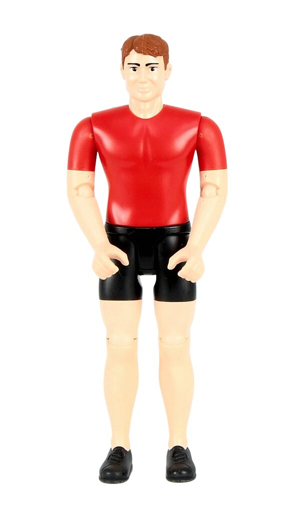 This man with red t-shirt figure is a detailed accessory for your Bruder models. With its movable limbs and realistic appearance, it adds to the authenticity of the game environment. The figure is compatible with other Bruder products and allows you to expand the gaming possibilities of your models.