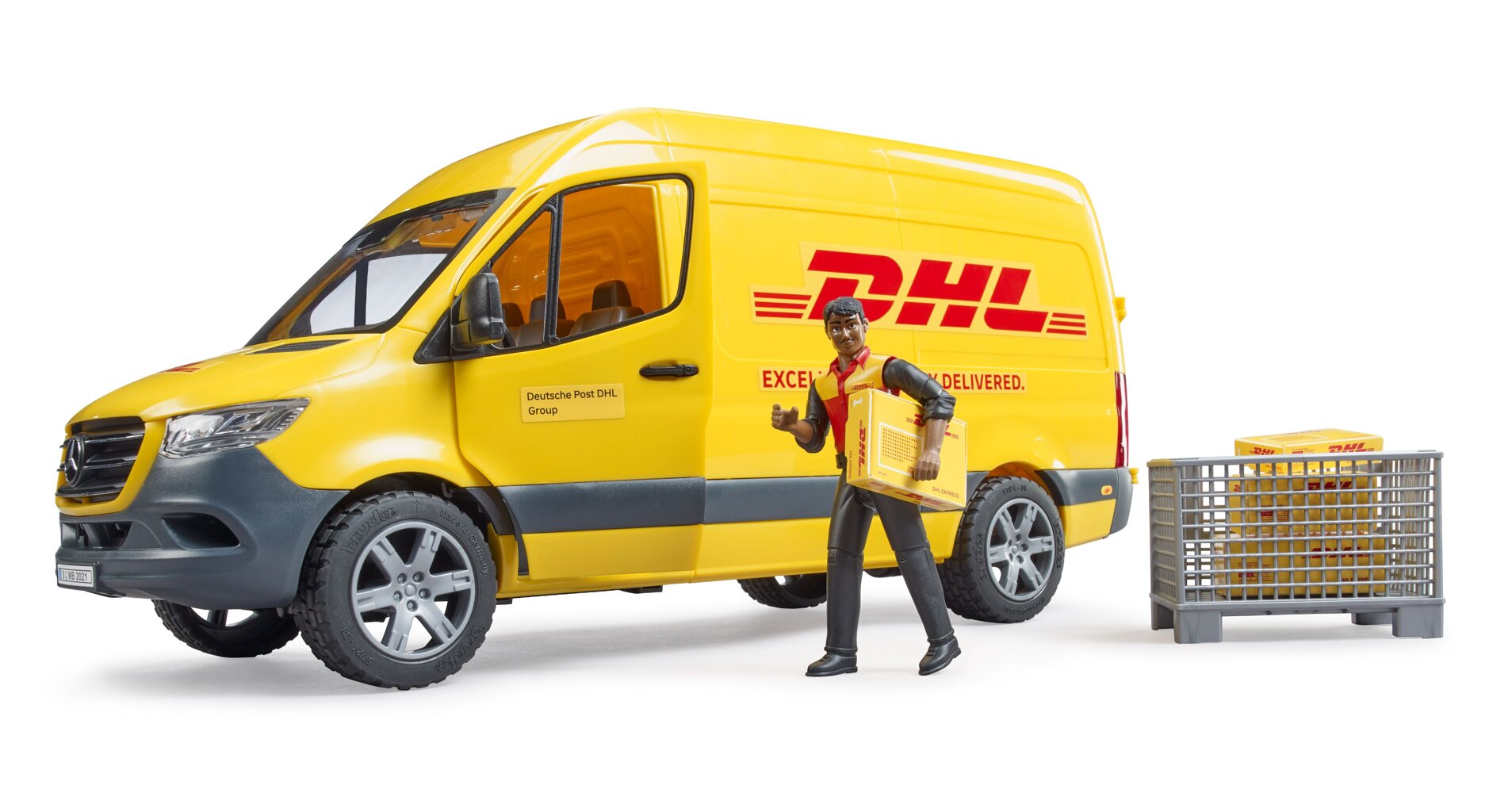 The vehicle has openable doors in the driver's cab and in the rear. A special feature is the newly developed sliding door on the passenger side. The model is equipped with a DHL driver, a gitrbox and DHL shipping packages. Thanks to the extensive logistics programme, this great model can be extended even further with a logistics kit (Bruder 2415) and a Linde H30D forklift (Bruder 2511), which bring even more fun to play with.