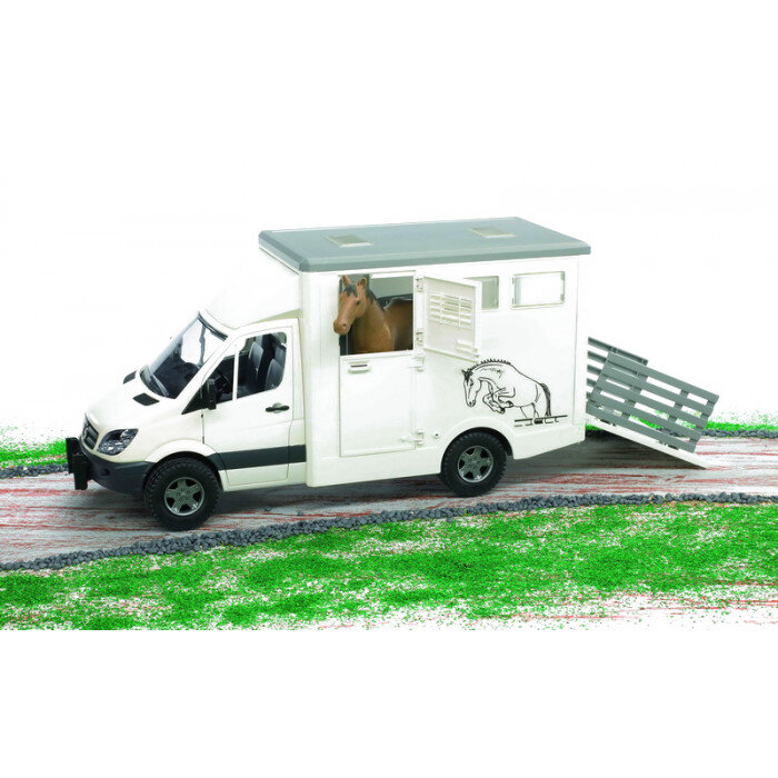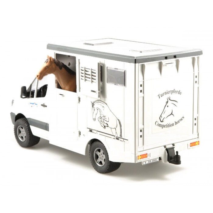 No proper stable would definitely lack a horse transporter, which will provide the animals with the maximum possible comfort. This detailed model of the Mercedes Benz Sprinter will delight every little horse lover. The model has real functions that are a guarantee of wonderful fun. The rear door of the transporter also serves as a boarding platform for animals, and the side doors can also be opened.
