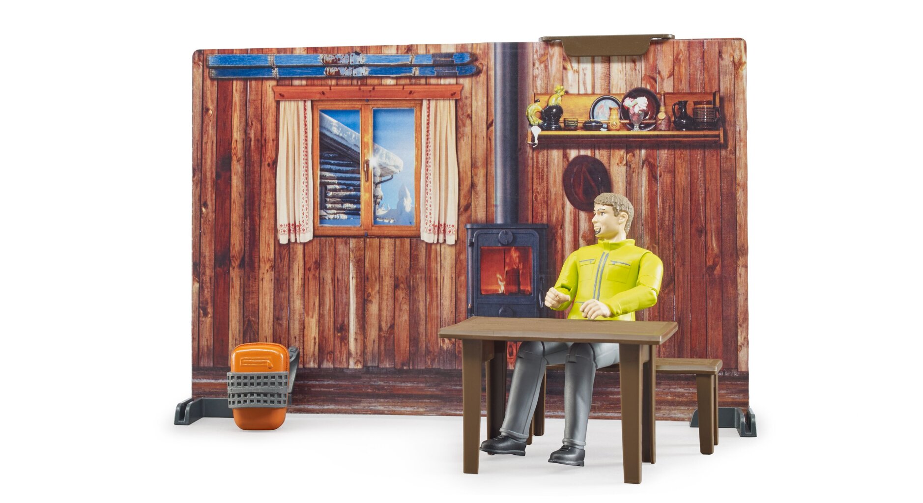 The mountain hut from the Bworld edition is the ideal starting point for winter fun. The hut is equipped with tools for skiing, sledging or snowshoeing. In front of the hut there is a snowmobile and a bench for relaxation.