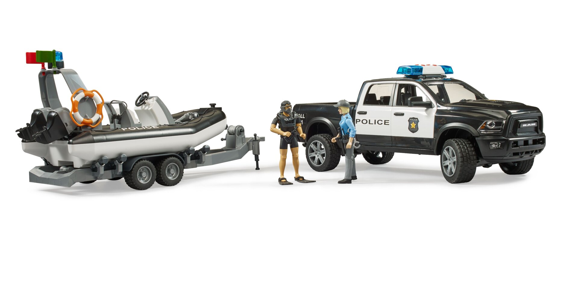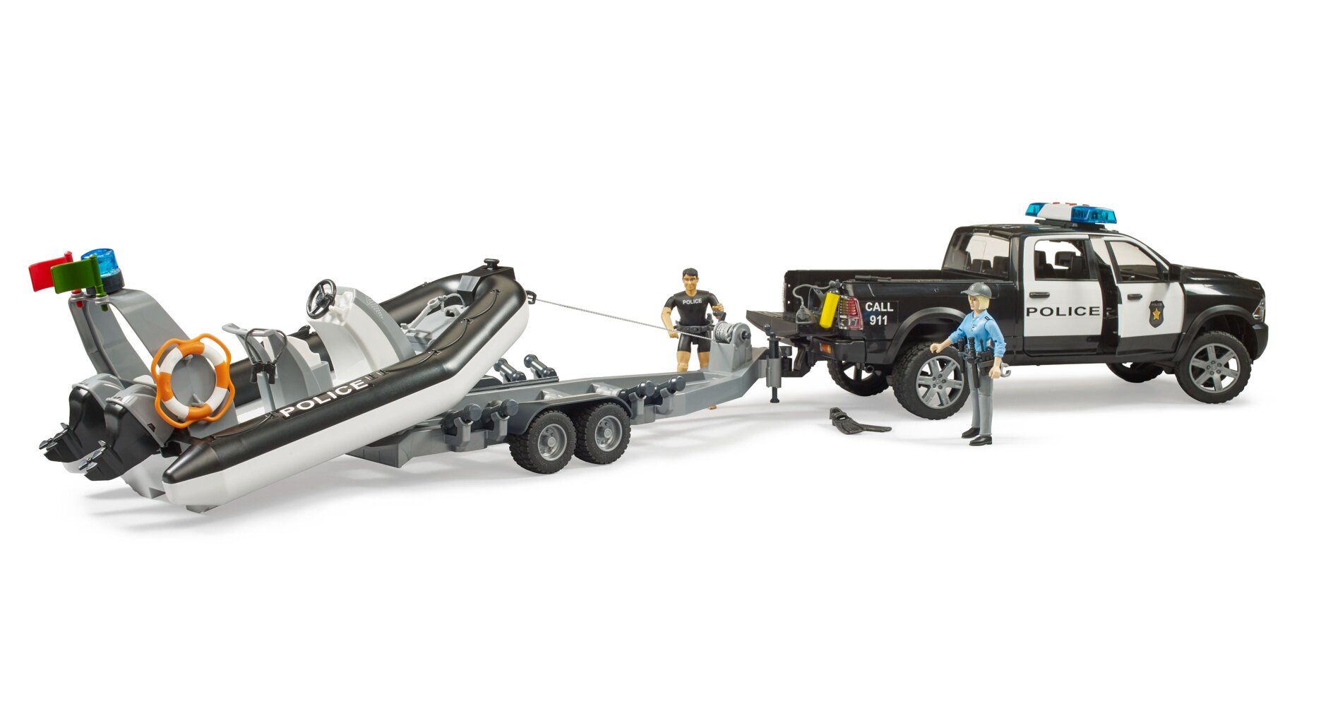 Police RAM 2500 with trailer, boat and beacon - Bruder 2507