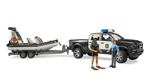 Police Pick up RAM 2500 with trailer, boat and L+S module - Bruder 2507
