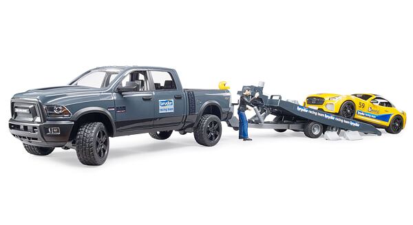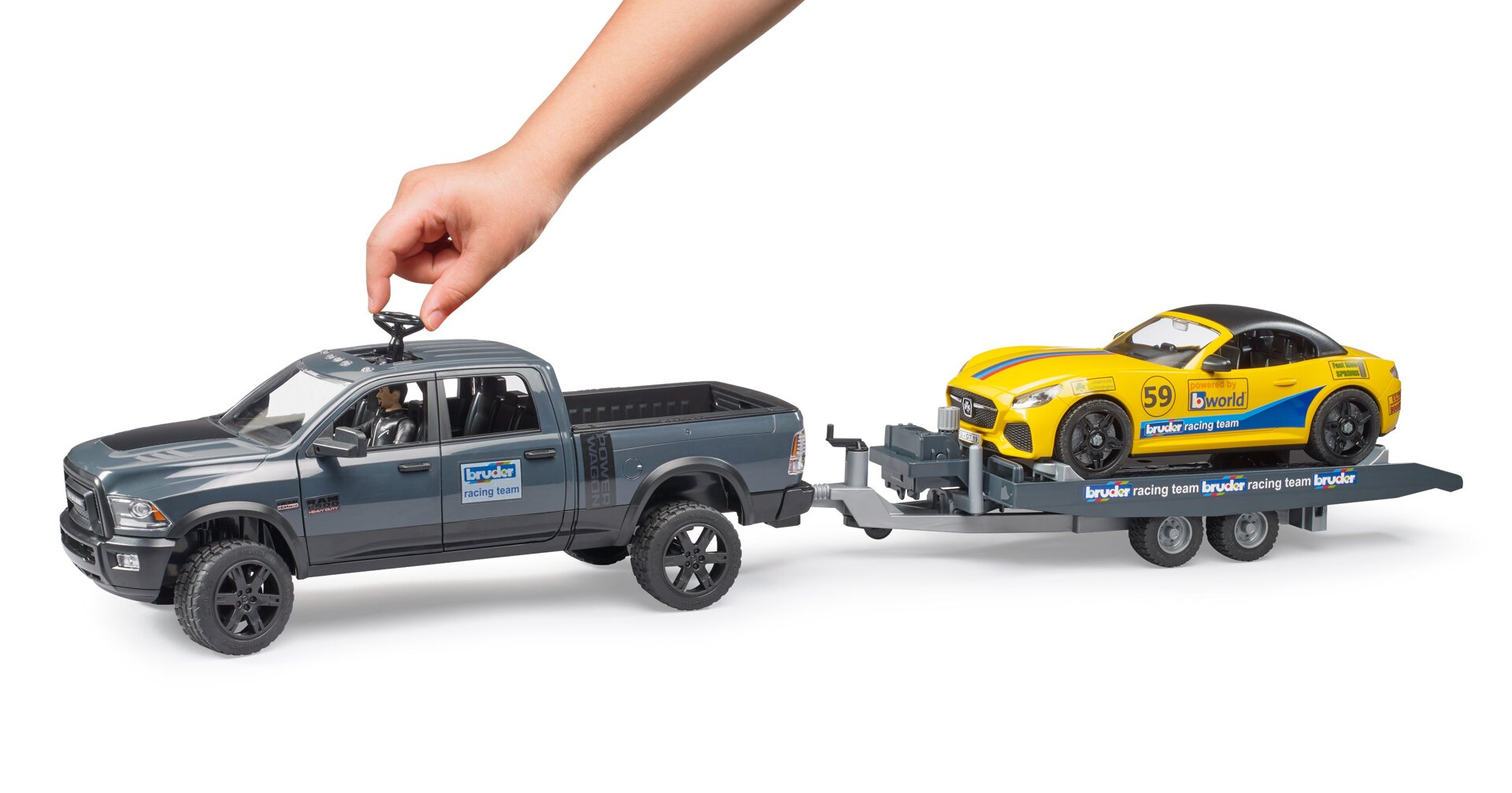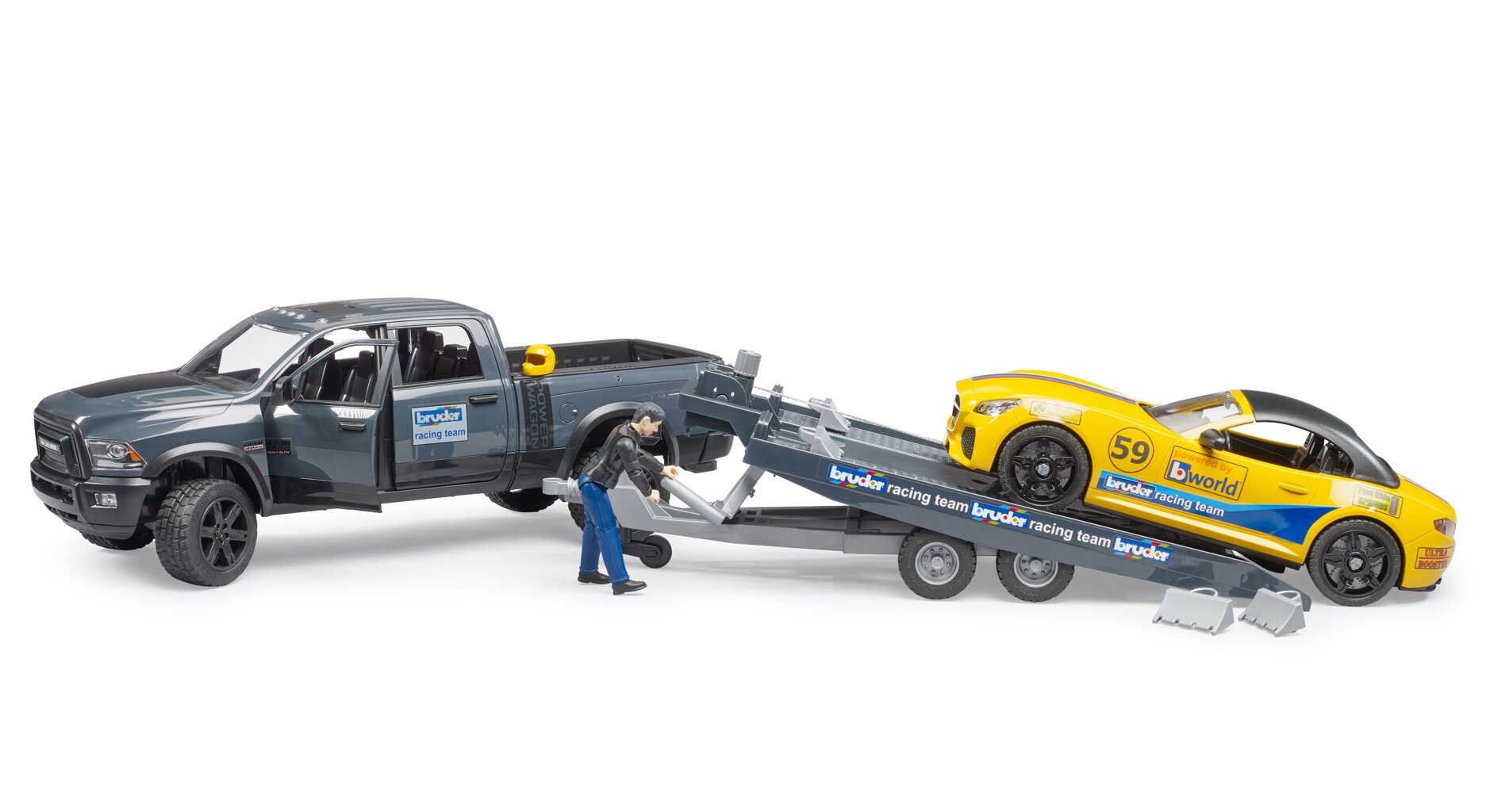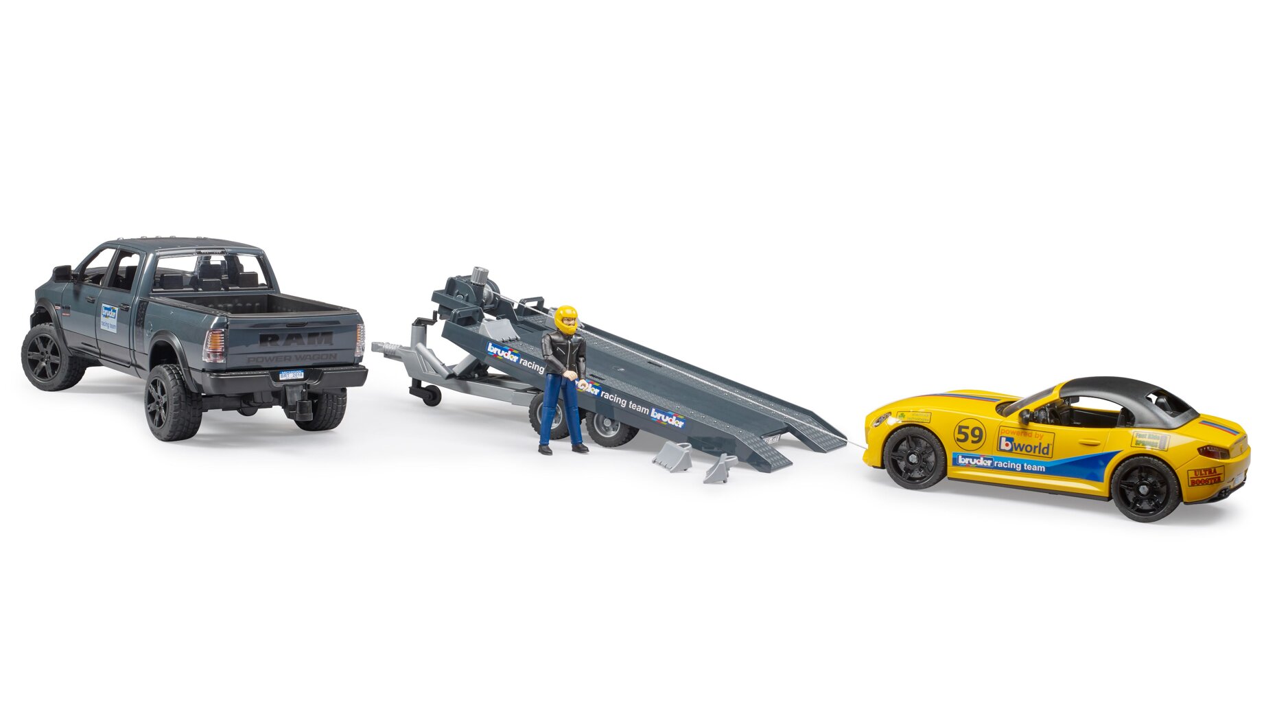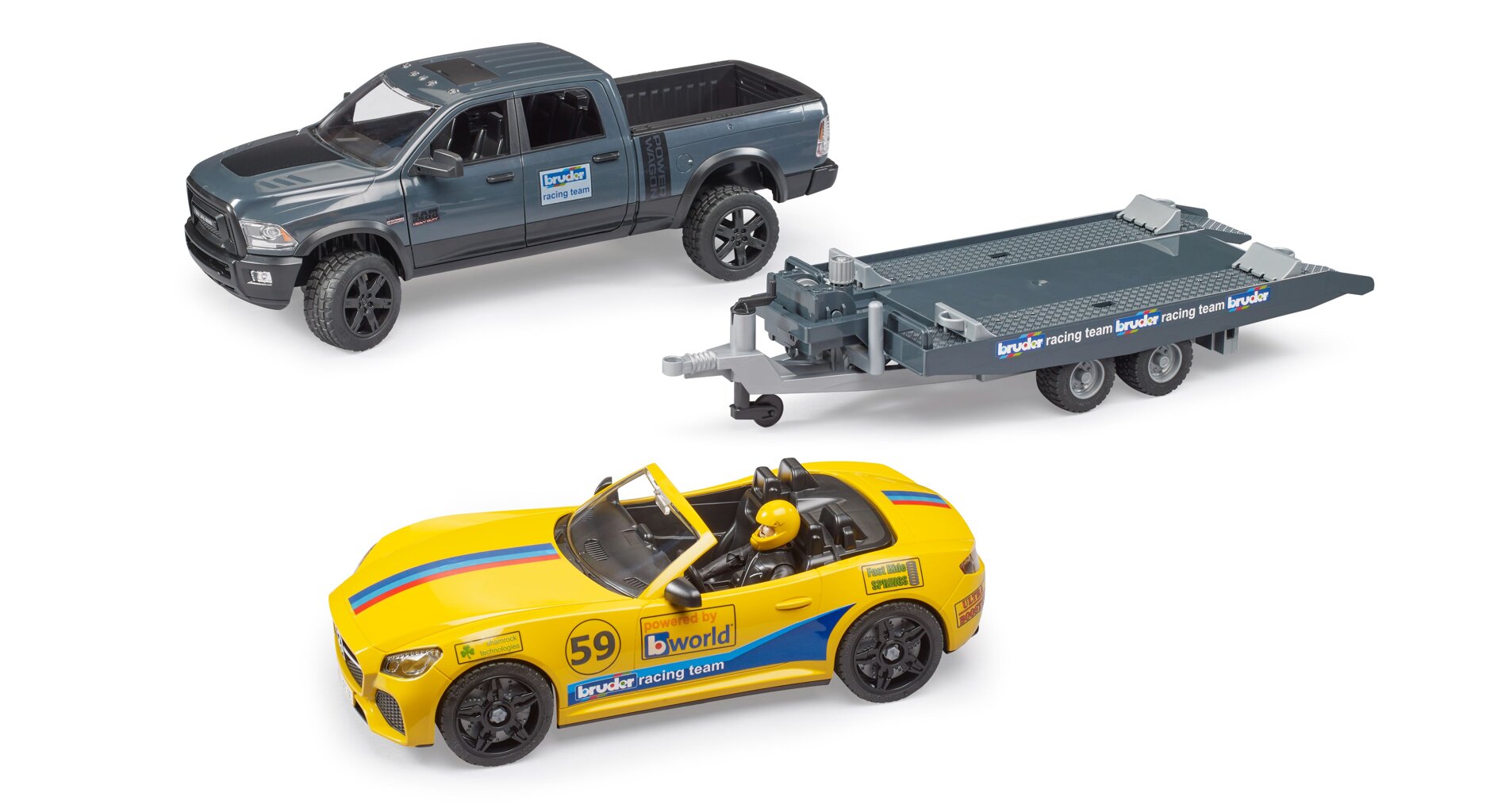 The new set for all motorsport enthusiasts includes a large RAM Power Wagon and a tuned Bruder Racing Team sports car.