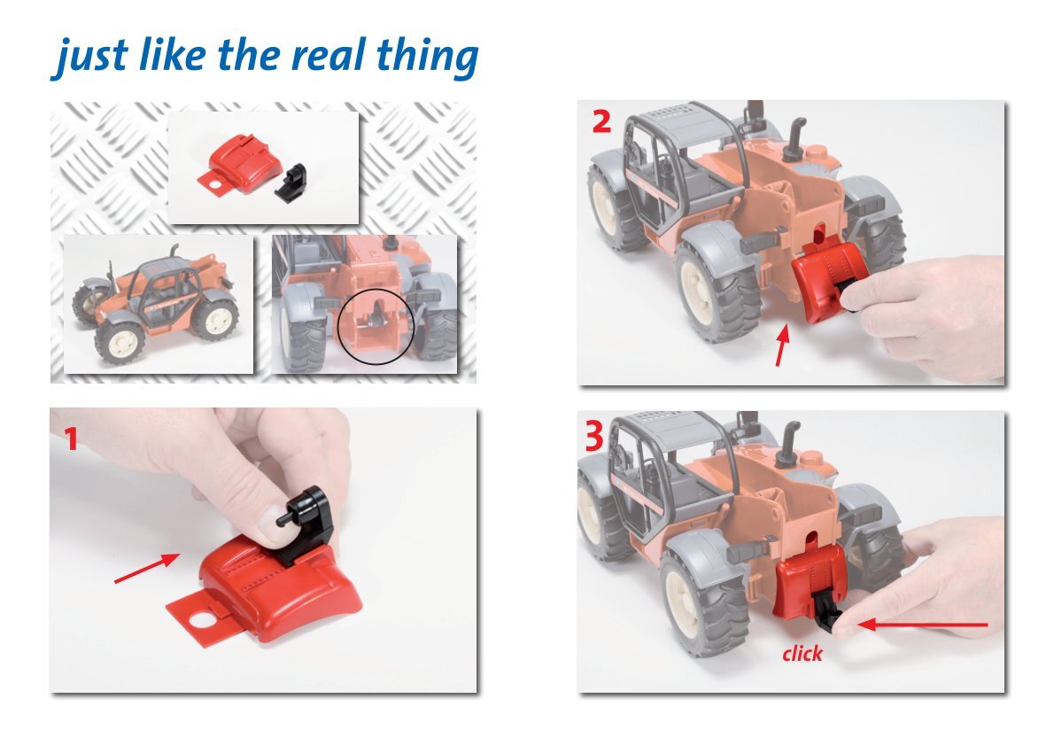 The original Bruder 42140 spare part is designed for the Manitou Bruder telescopic handler model. This detailed element increases the stability and balance of the vehicle, especially when handling heavy loads, and allows additional accessories to be attached thanks to the hitch.