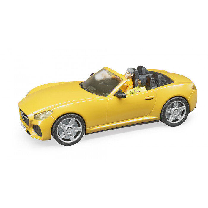 The new Bruder Roadster will impress you with its sporty character. Thanks to its striking design and colour, it will become the favourite toy of all car enthusiasts. Because this roadster has a removable roof, you can place any figure from the BWORLD range on the sports seats .