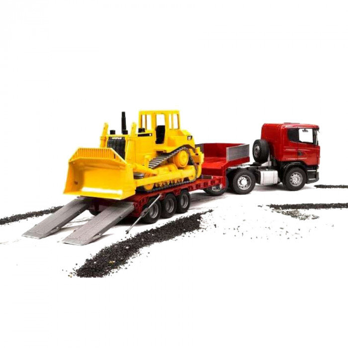 Scania R truck with trailer and CAT bulldozer - Bruder 3555