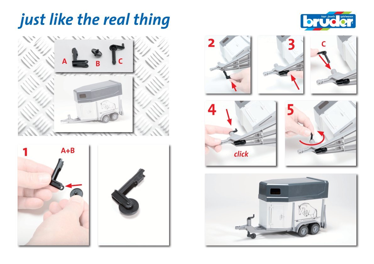 Easy installation allows for quick replacement of damaged or worn parts, so your Bruder trailer will always be ready for your next play adventure or work assignment. This kit is fully compatible with select Bruder trailer models, ensuring seamless integration and proper functionality.