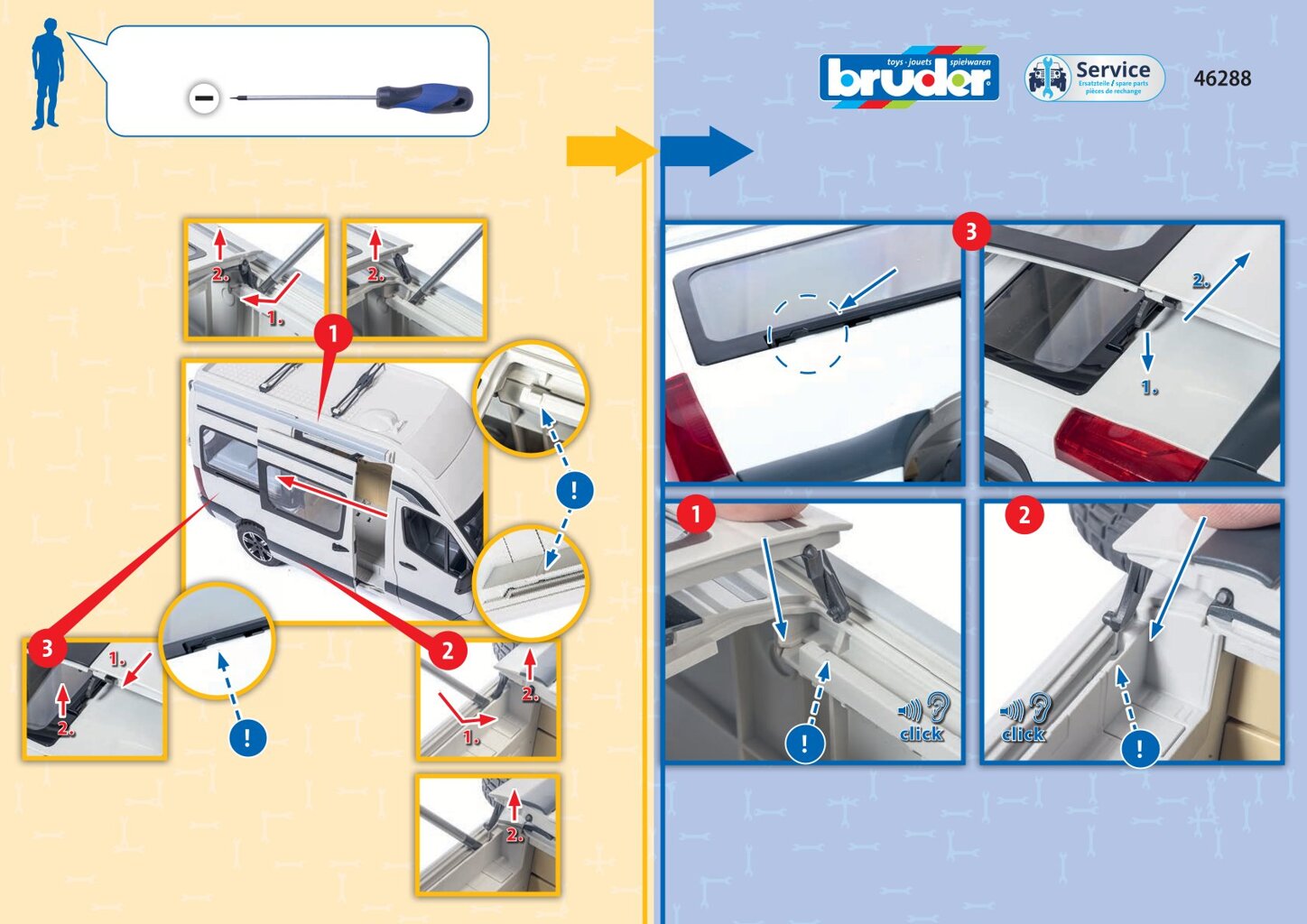 This part is fully compatible with the Bruder MB Sprinter Camper, ensuring a correct fit and trouble-free functionality in all game scenarios.