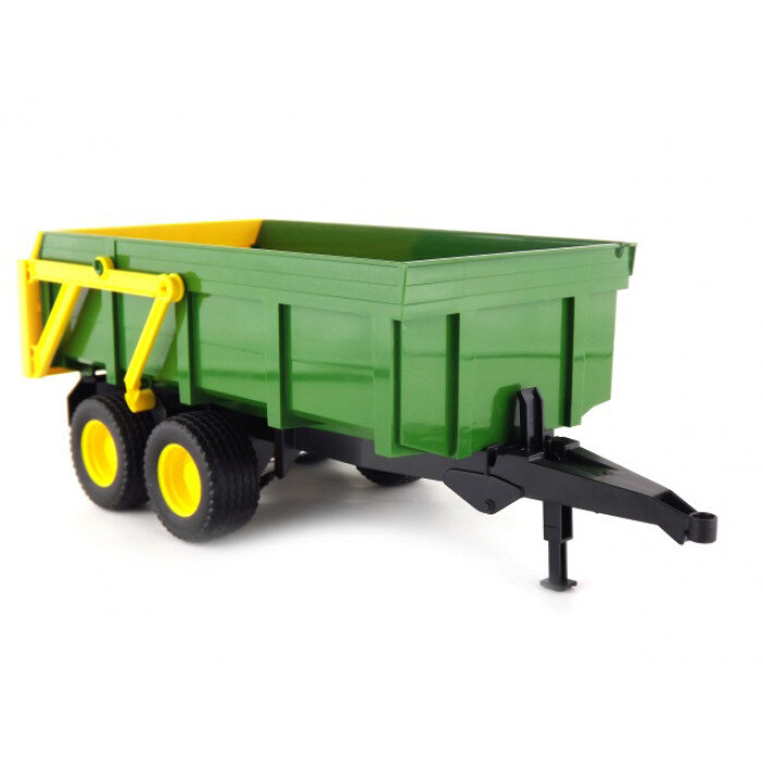 The flatbed designed for use with Bruder Profi tractors will delight every small farmer. This model is equipped with a high-tilting body, the tailgate opens automatically. The stability of the machine is provided by a folding support leg. Thanks to the high-quality and very detailed manufacturing with functional elements, this trailer is a guarantee of perfect fun.